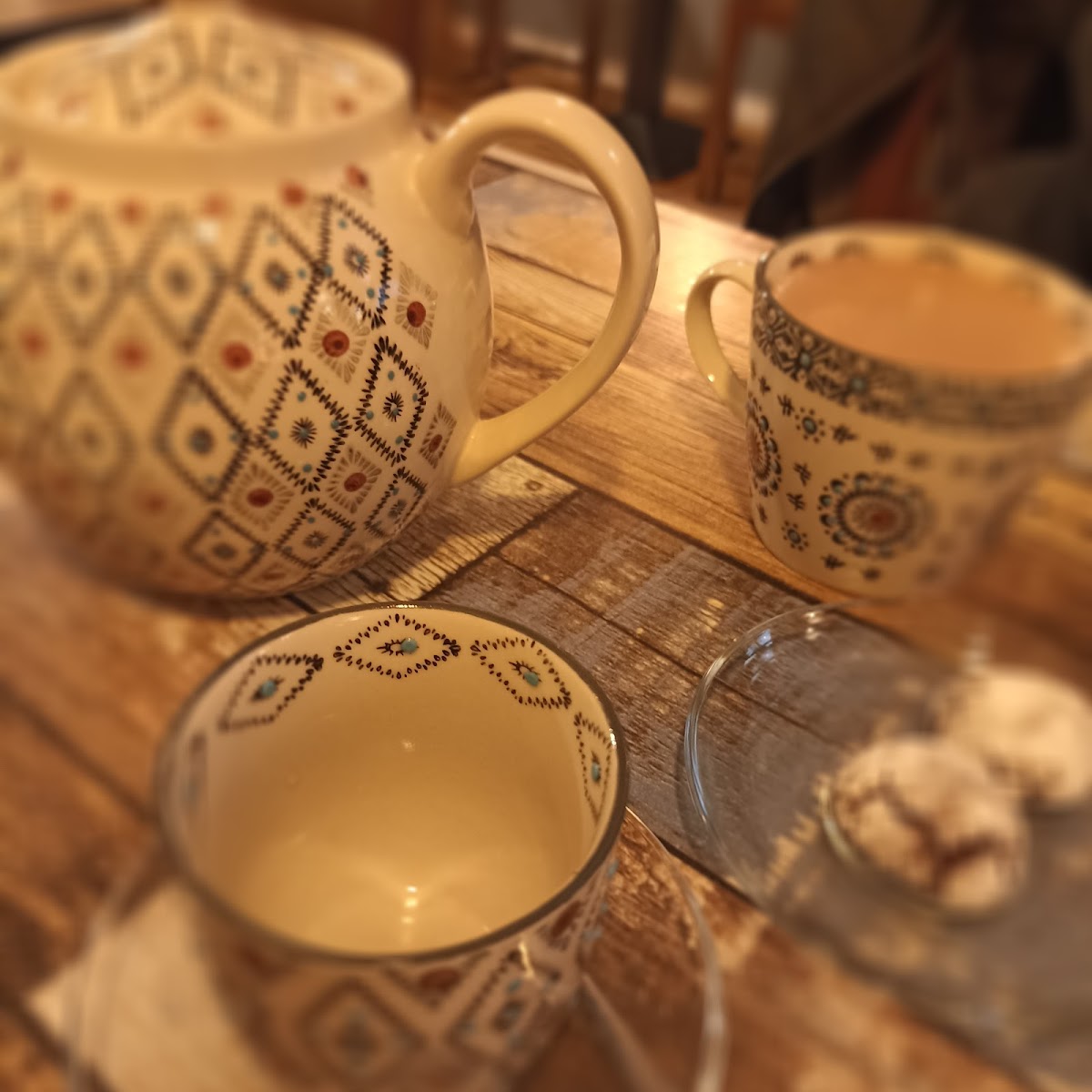 The tea house offers both dine-in and delivery services, making it a convenient spot for both locals and visitors alike. If you're in the mood for a peaceful afternoon out, the cozy indoor seating offers a perfect escape from the hustle and bustle. The atmosphere is inviting, with warm tones and a relaxed ambiance that makes it easy to sit back and savor your tea or hot chocolate while catching up with friends or enjoying some solo time.